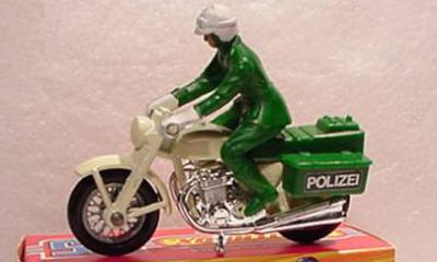 cream, chrome engine, green rider, with rider painted, green seat, POLIZEI (wide) deco |