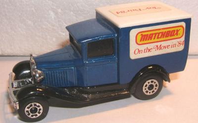 blue, black, white textured, MB ON THE MOVE 84 / TOY FAIR 84 (roof) labels