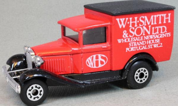 Body red, black chassis, black textured roof, KG license plate, W.H. SMITH and SON LTD. deco