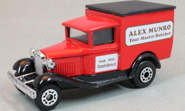 red, black chassis, black textured roof, KG license plate, ALEX MUNRO MASTER BUTCHER deco |