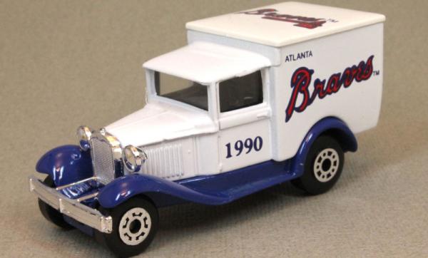 white, blue chassis, white smooth roof, KG license plate, ATLANTA BRAVES 1990 deco |