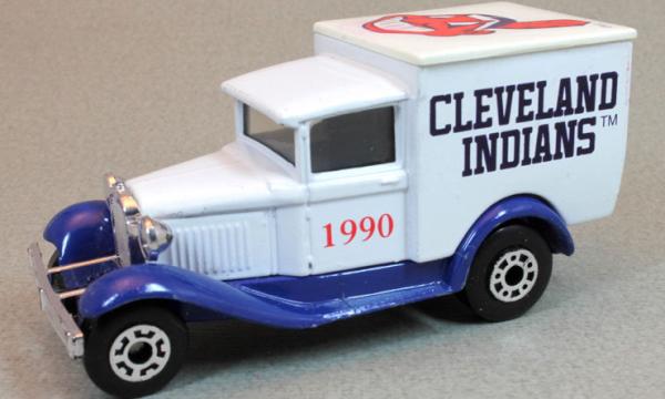 white, blue chassis, white smooth roof, KG license plate, CLEVELAND INDIANS 1990 deco |