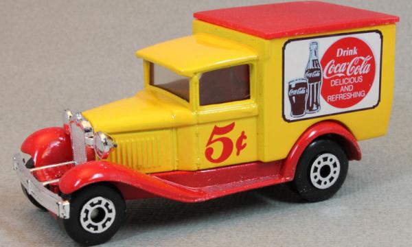 yellow, red chassis, red textured roof, KG license plate, DRINK COCA-COLA, brown bottle and glass deco |