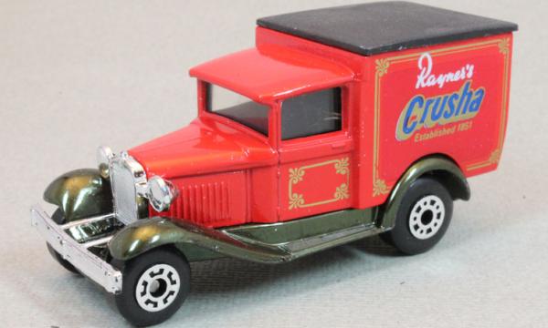 red, green-black chassis, black textured roof, KG license plate, RAYNER'S CRUSHA deco |