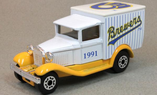 Body white, yellow chassis, white smooth roof, KG license plate, BREWERS 1991 deco