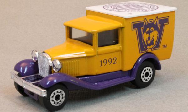 Body orange-yellow, purple chassis, white smooth roof, KG license plate, UNIVERSITY OF WASHINGTON 1992, TM right of W deco