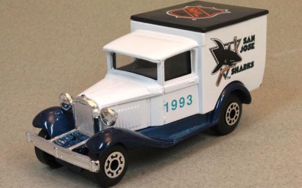 Body white, metallic turquoise chassis, black smooth roof, KG license plate, SAN JOSE SHARKS 1993 deco