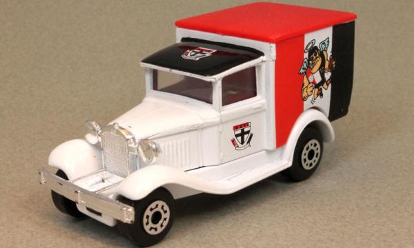 white, white chassis, red textured roof, PC license plate, ST. KILDA SAINTS deco |