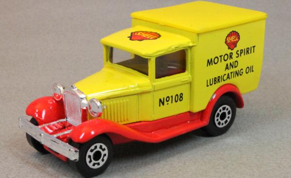 Body yellow, red chassis, yellow textured roof, DR license plate, SHELL MOTOR SPIRIT deco