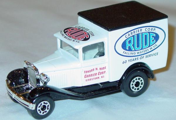 Body white, black chassis, black textured roof, KG license plate, CARRIER CORP. RUDE, oval rear logo deco