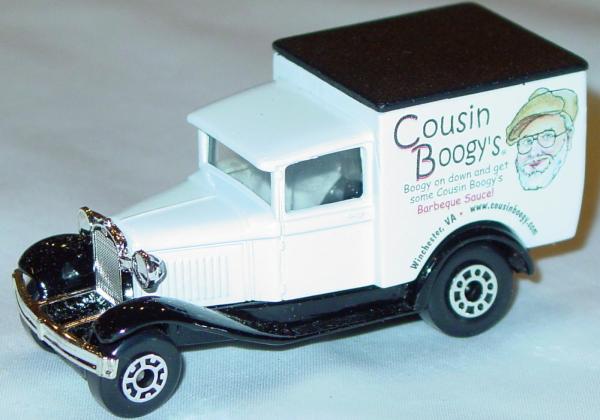white, black chassis, black textured roof, KG license plate, COUSIN BOOGY'S deco |