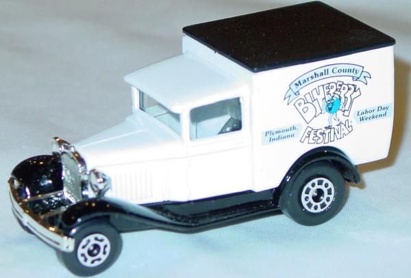 white, black chassis, black textured roof, KG license plate, MARSHALL COUNTY BLUEBERRY FESTIVAL deco |