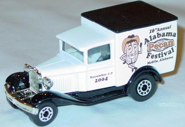 Body white, black chassis, black textured roof, KG license plate, 16TH ANN. ALABAMA PECAN FESTIVAL deco