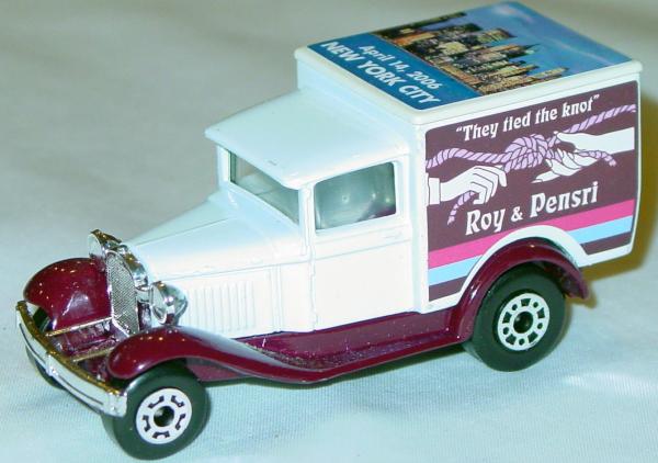 white, maroon chassis, white smooth roof, KG license plate, ROY and PENSRI, NYC skyline roof label deco |