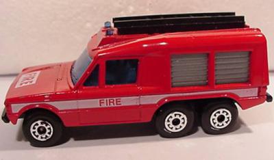 red, light blue roof lights, black ladders roof attachment, FIRE, white stripe tampo |