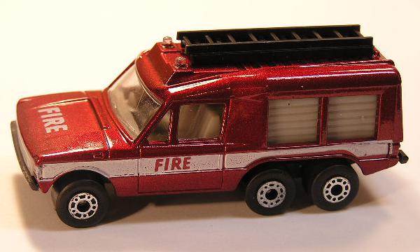 Body metallic red, colorless roof lights, black ladder roof attachment, white FIRE tampo