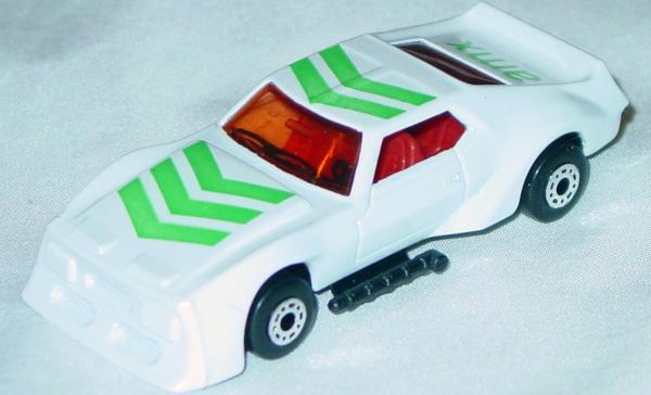white, green hood and roof stripes, AMX on trunk tampo |