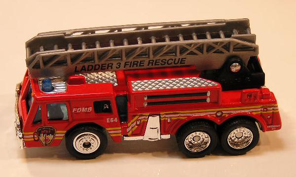 red, black turret, gray ladder, FDMB / LADDER 3 FIRE RESCUE, yellow and white stripe tampo |