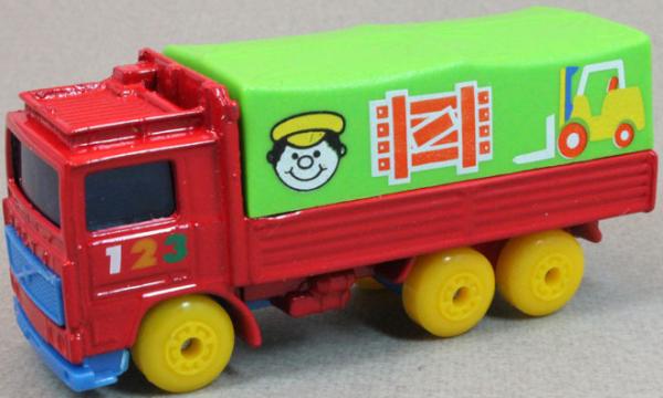 red, lime canopy, cartoon face and forklift, 123 on doors tampo |