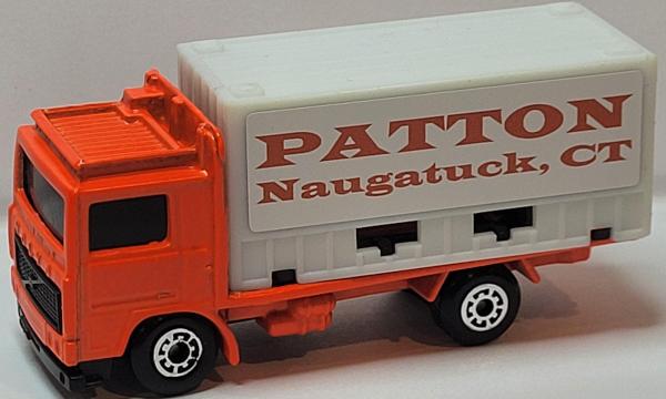 Body flourescent orange, white container, PATTON NAUGATUCK, CT deco