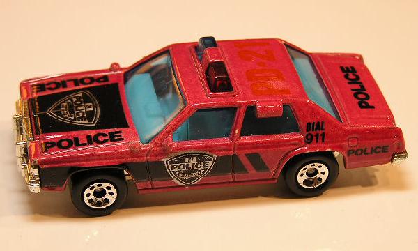 raspberry red, red and blue roof light, chrome grille, orange and black POLICE PD-21 tampo |