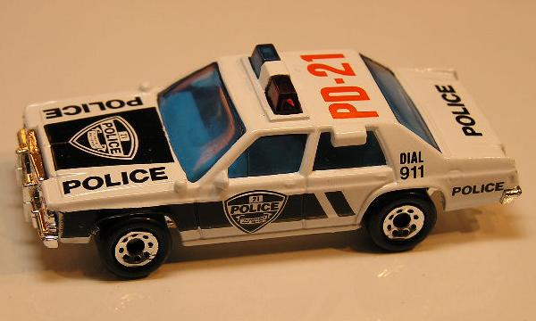 white, red and blue roof light, chrome grille, orange and black POLICE PD-21 without silver on shields tampo |