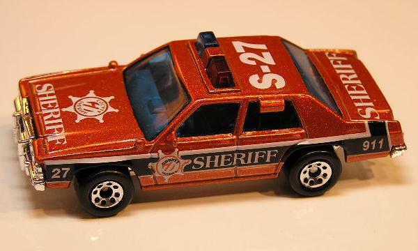 metallic brown-gold, red and blue roof light, chrome grille, SHERIFF S-27, black band tampo |