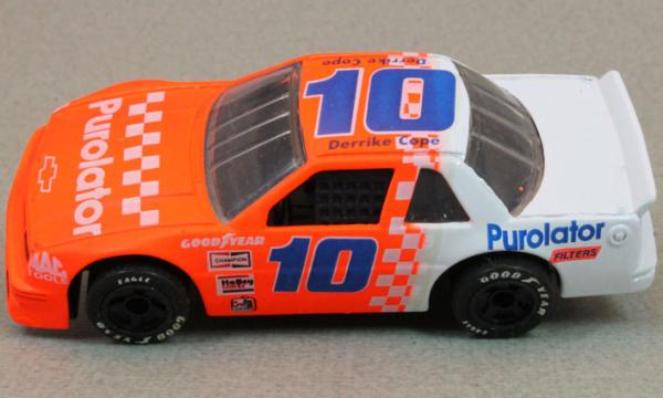 fluorescent orange and white, Derrike Cope driver name, PUROLATOR 10 tampo |