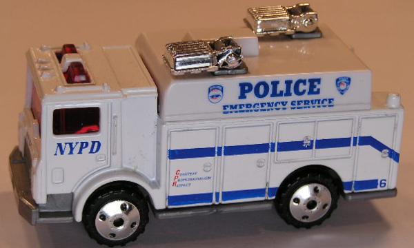 Body white, white roof, silver and gray roof fixtures, POLICE EMERGENCY SERVICE NYPD tampo
