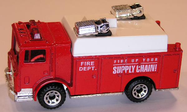 Body red, white roof, silver and black roof fixtures, SCOREX / SUPPLY CHAIN (white, sides) tampo