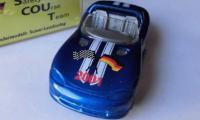 metallic blue, detail trim, dual white stripes, license RT / 10