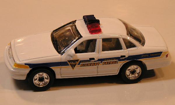 white, blue and red, black center roof light, SOUTH DAKOTA HIGHWAY PATROL, detail trim, license HP 1 deco |