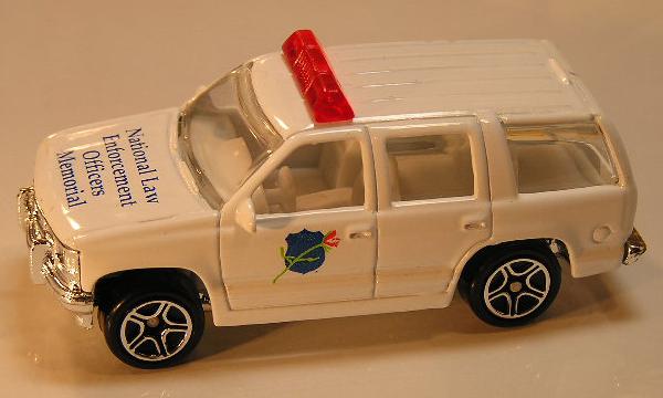 Body white, red roof light, large NAT'L LAW ENFORC. OFFICERS MEMORIAL (blue, red and green, hood and sides) tampo