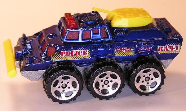 | dark blue, yellow turret, yellow separate ram, POLICE RAM-1 |