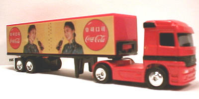 | Trailer Detail | red container with black chassis, COCA COLA with Chinese lettering labels |