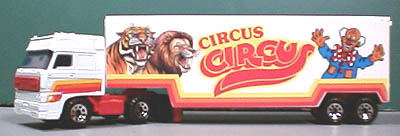 | Trailer Detail | white container with red base, CIRCUS CIRCUS labels |