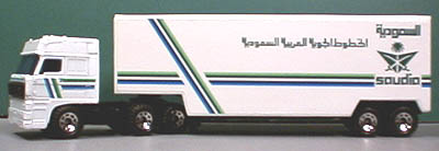 | Trailer Detail | white container with black base, SAUDIA labels |