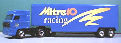 | Trailer Detail | blue container with black base, MITRE 10 RACING labels |