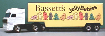 | Trailer Detail | yellow container with black base, BASSETT'S JELLY BABIES labels |