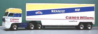 | Trailer Detail | white container with dark blue base, RENAULT ELF/CANON WILLIAMS labels |