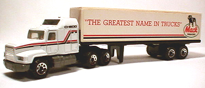 | Trailer Detail | white container with black base, THE GREATEST NAME IN TRUCKS-MACK labels |