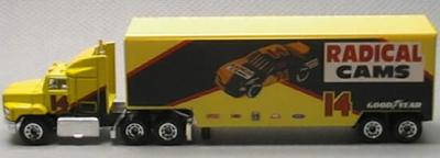 | Trailer Detail | yellow container, RADICAL CAMS labels, 8-spoke wheels |