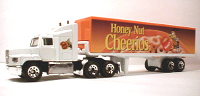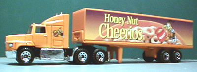 | Trailer Detail | orange container, white chassis, HONEY NUT CHEERIOS labels |