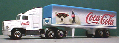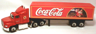 | Trailer Detail | red container, black chassis, COCA COLA and Santa labels |