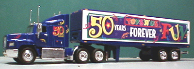 | Trailer Detail | bright blue, TOYS R US-50 YEARS FOREVER FUN labels |
