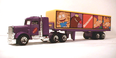 | Trailer Detail | yellow container with grape base, NICKELODEON labels, 8 spoke wheels |