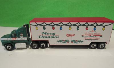 | Trailer Detail | red container, MERRY CHRISTMAS WHITE ROSE COLLECTIBLES 1992 labels |