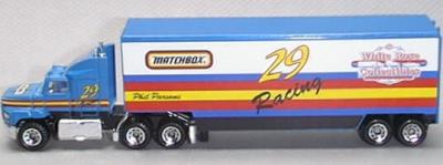 | Trailer Detail | blue container, MATCHBOX 29 RACING labels |