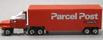 | Trailer Detail | orange-red container, PARCEL POST AUSTRALIA labels |
